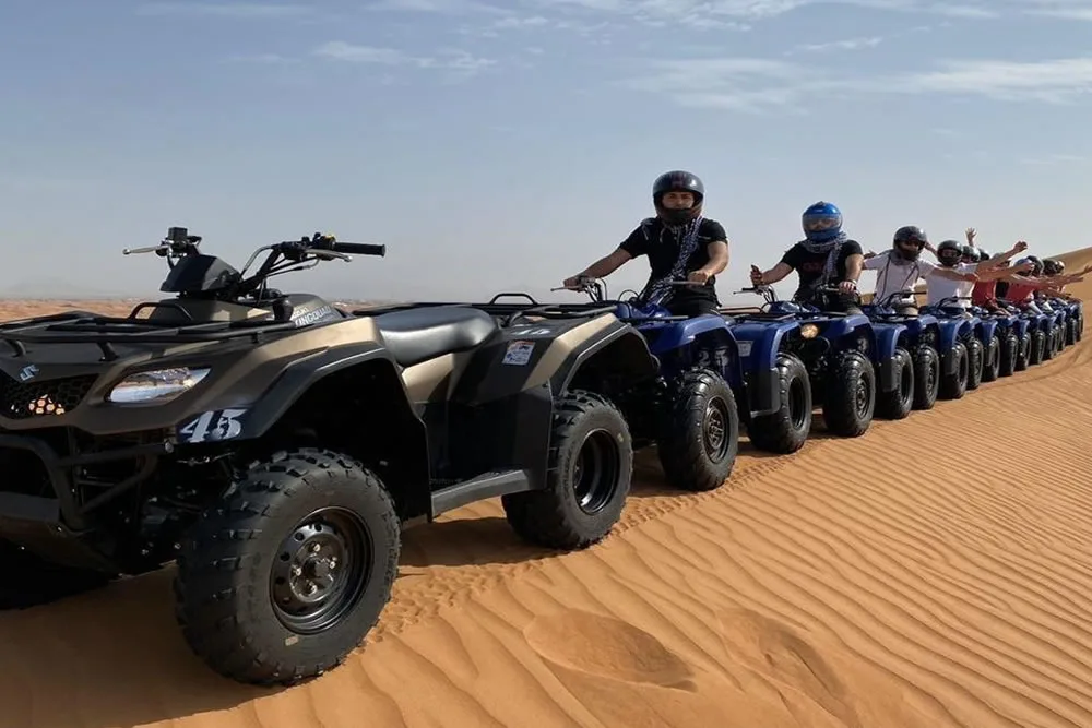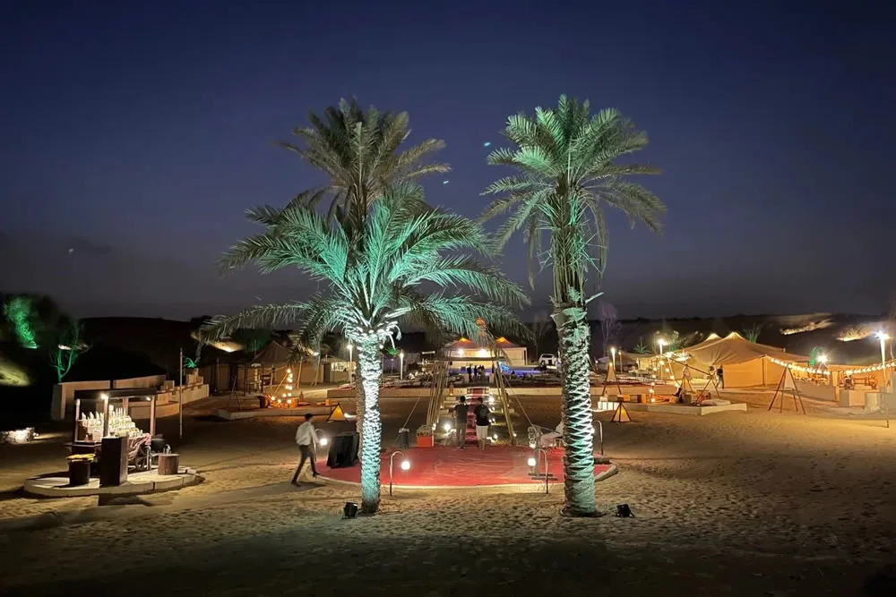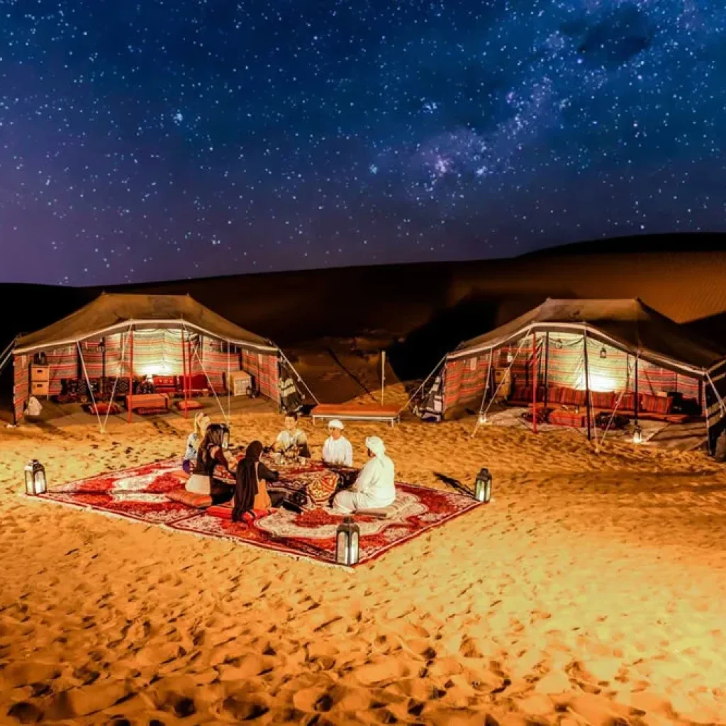 Enjoy a variety of activities, including dune bashing, sandboarding, quad biking, and camel riding—all conducted under strict safety measures.Authentic Arabian Camp: